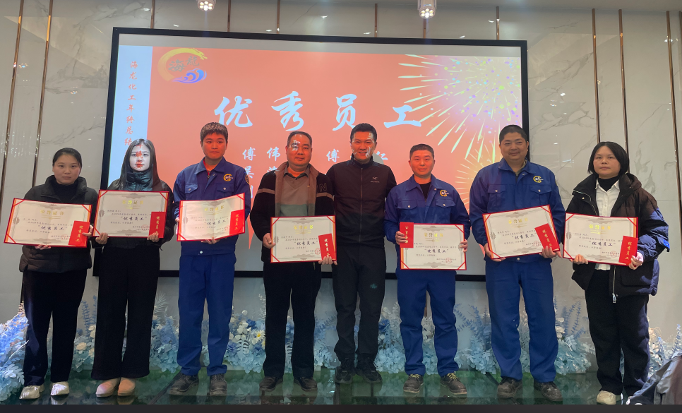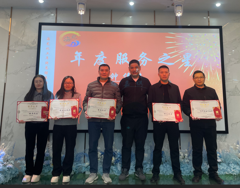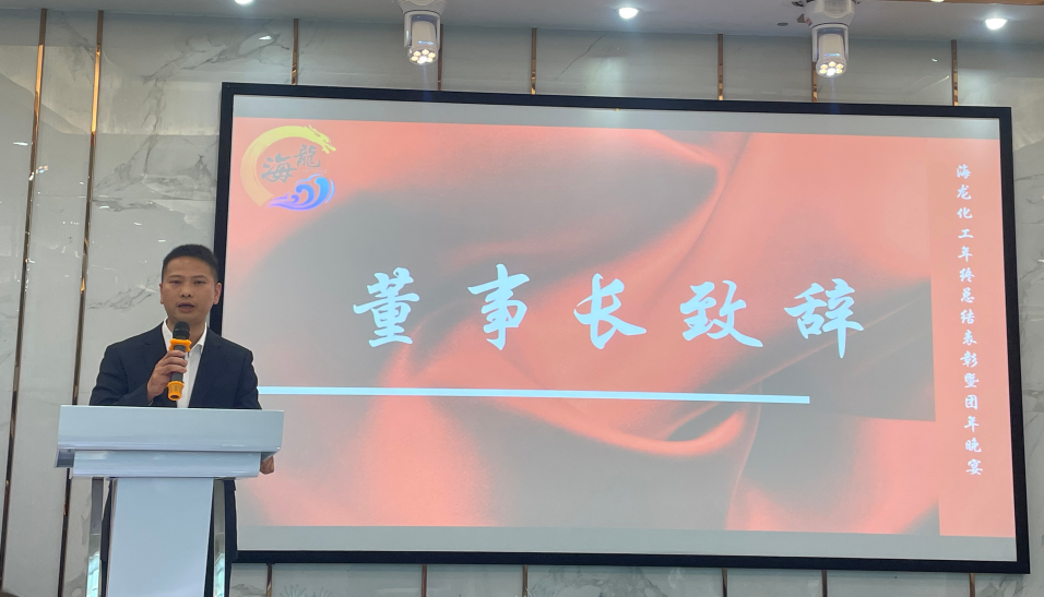 祥龍辭歲福澤厚,靈蛇納祥好運來。海龍化工2024年終總結表彰大會暨團年晚宴于1月14日宴慶樓酒店盛大召開。會議旨在回顧公司的發(fā)展歷程及全面總結2024年工作成果,并為2024年取得優(yōu)異成績和為公司作出突出貢獻的管理人員、優(yōu)秀員工、優(yōu)秀團隊等給予了表彰和頒獎。