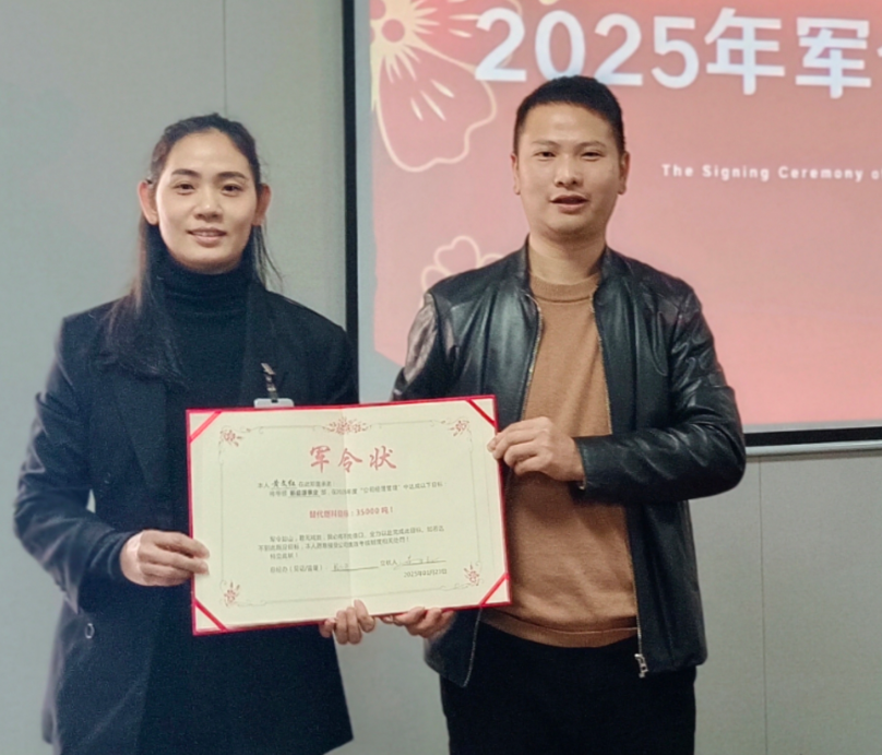 會上,各部門領導對2024年的工作作了詳細的匯報和總結,除了匯報成績、總結不足,還對2025年的工作制定了計劃和目標。面對競爭日趨白熱化的市場形勢,海龍化工決勝全年的信念不變,為了全面貫徹落實2025年經營業(yè)績目標,公司跟各部門負責人簽訂了”軍令狀”,堅定吹響了全年奮戰(zhàn)號角。